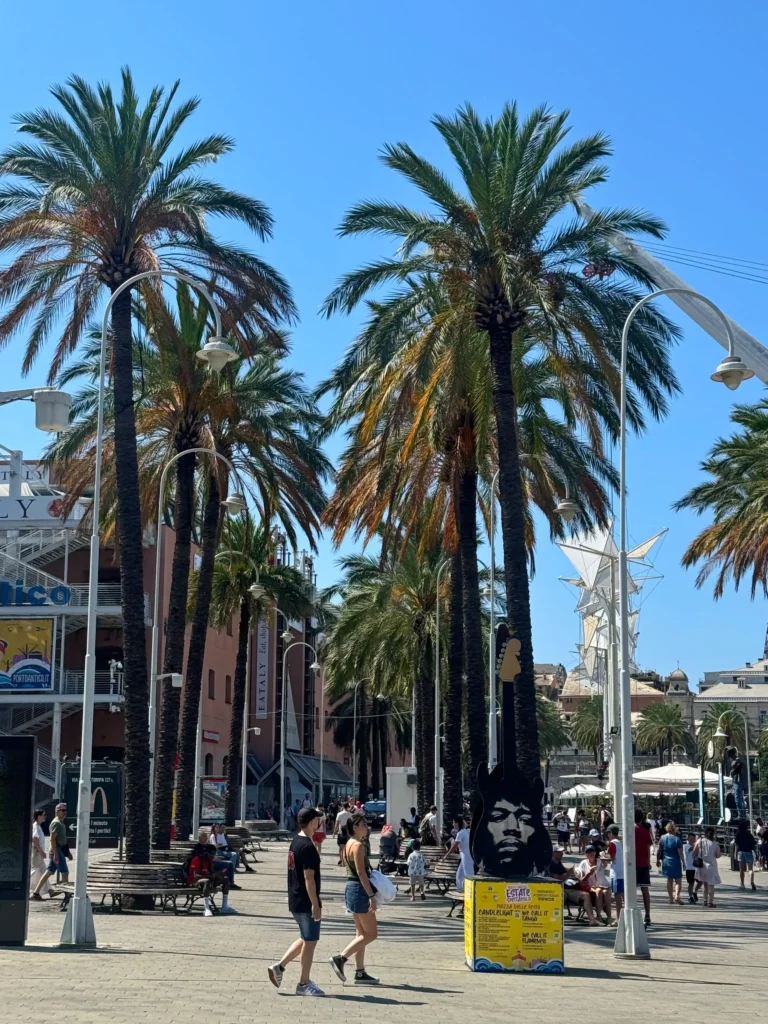 After the aquarium, hunger led us to a tiny street-food corner. Here we tasted freshly fried seafood — crisp, delicate, and full of the sea’s flavour. Simple food, but unforgettable, eaten right on the street while watching people pass by. And of course, we couldn’t leave without trying local gelato. Cold, creamy, perfectly sweet — it was the ideal ending to a warm Genoese afternoon. Sitting on a stone bench, gelato in hand, we felt like time had slowed down.