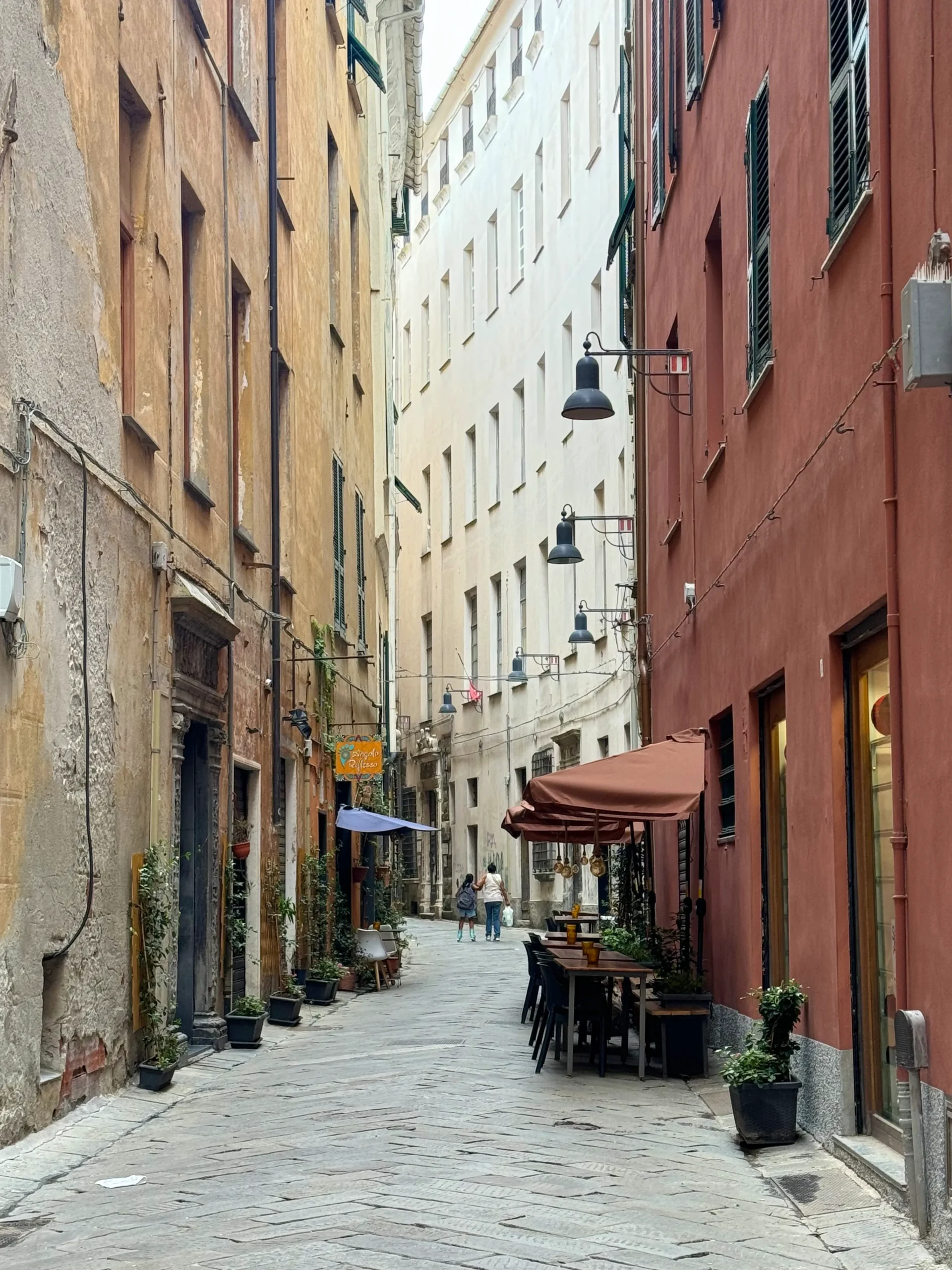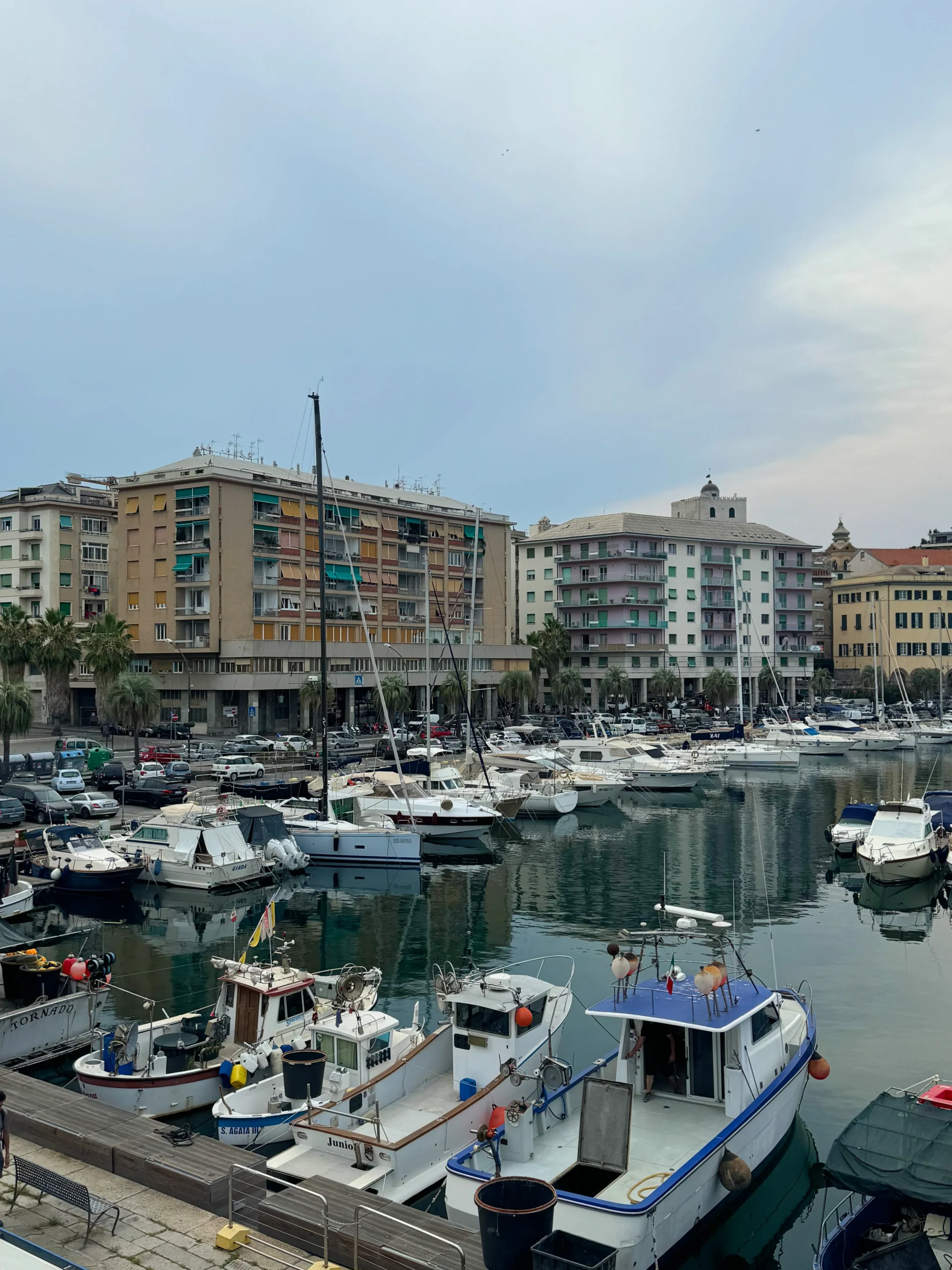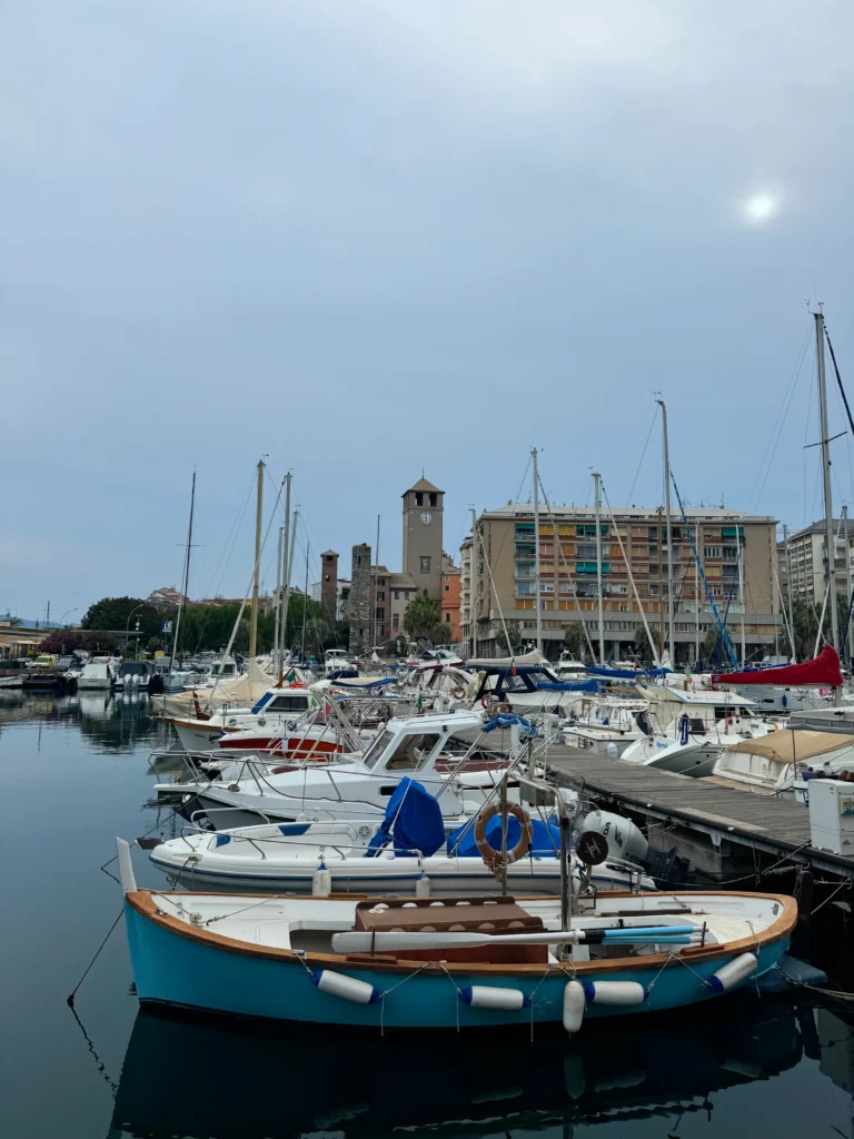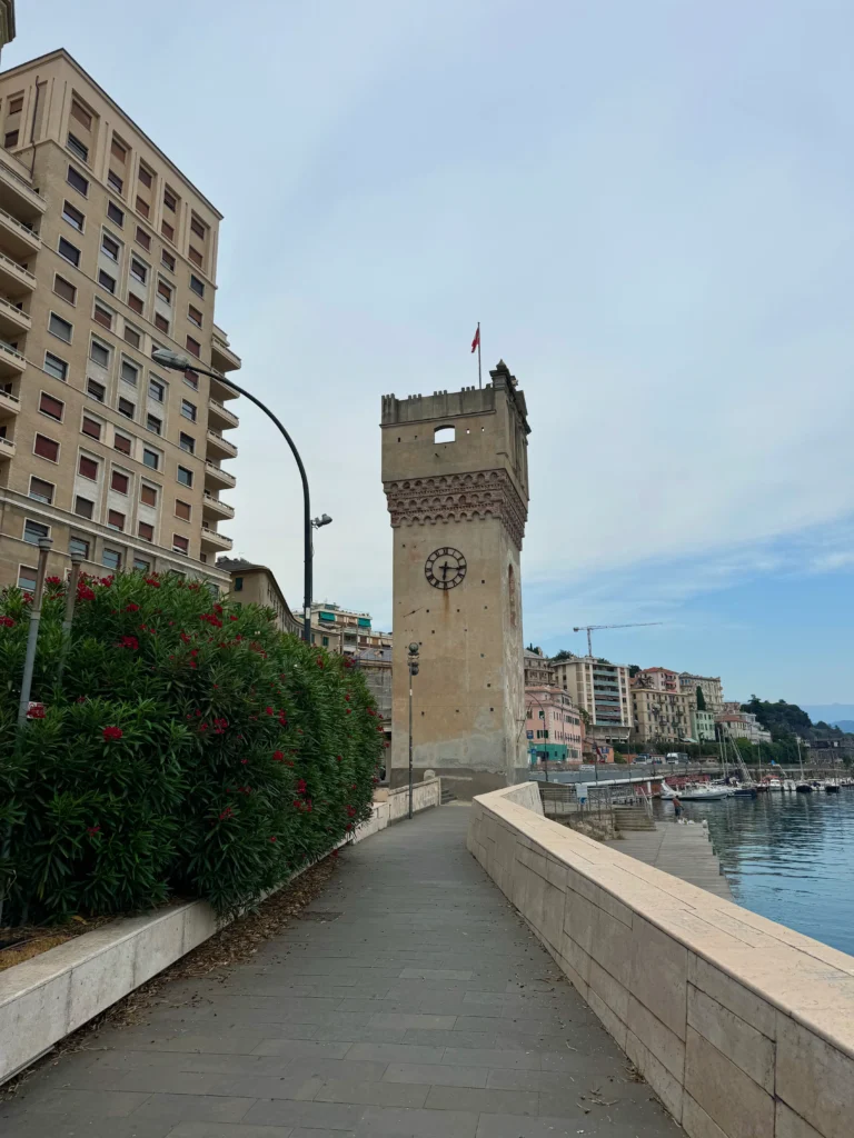 Погода відчувалася по-справжньому літньою, навіть без яскравого сонця. Час від часу легкі хмари пропливали небом, але вони не забирали тепла Лігурійського узбережжя. Повітря залишалося м’яким і солонуватим, огортаючи місто приємною спекою, яка не втомлювала, а заспокоювала. Це був саме той день, коли не хочеться нікуди поспішати, бо сама атмосфера тихо підказує сповільнитися й просто бути тут і зараз.