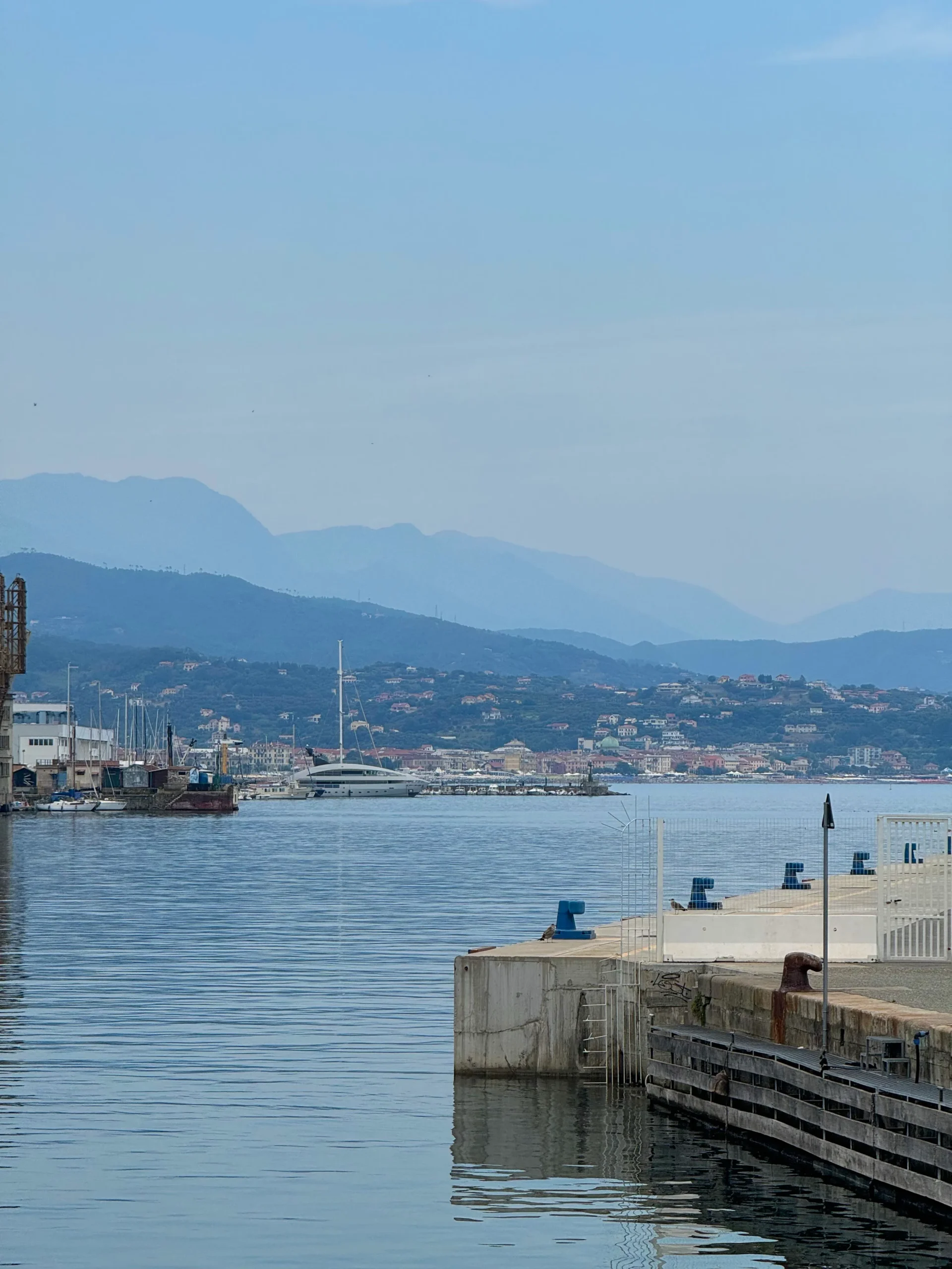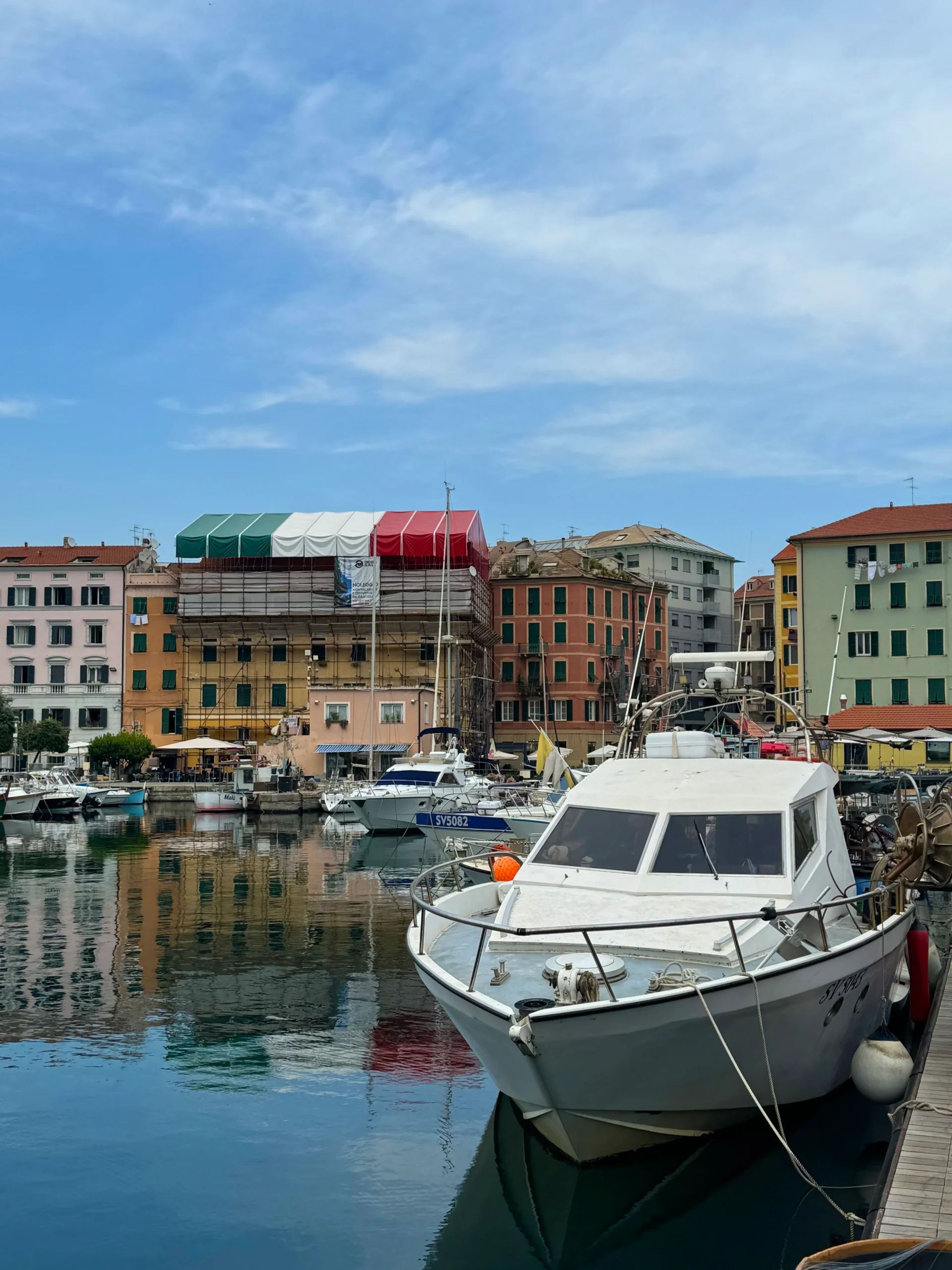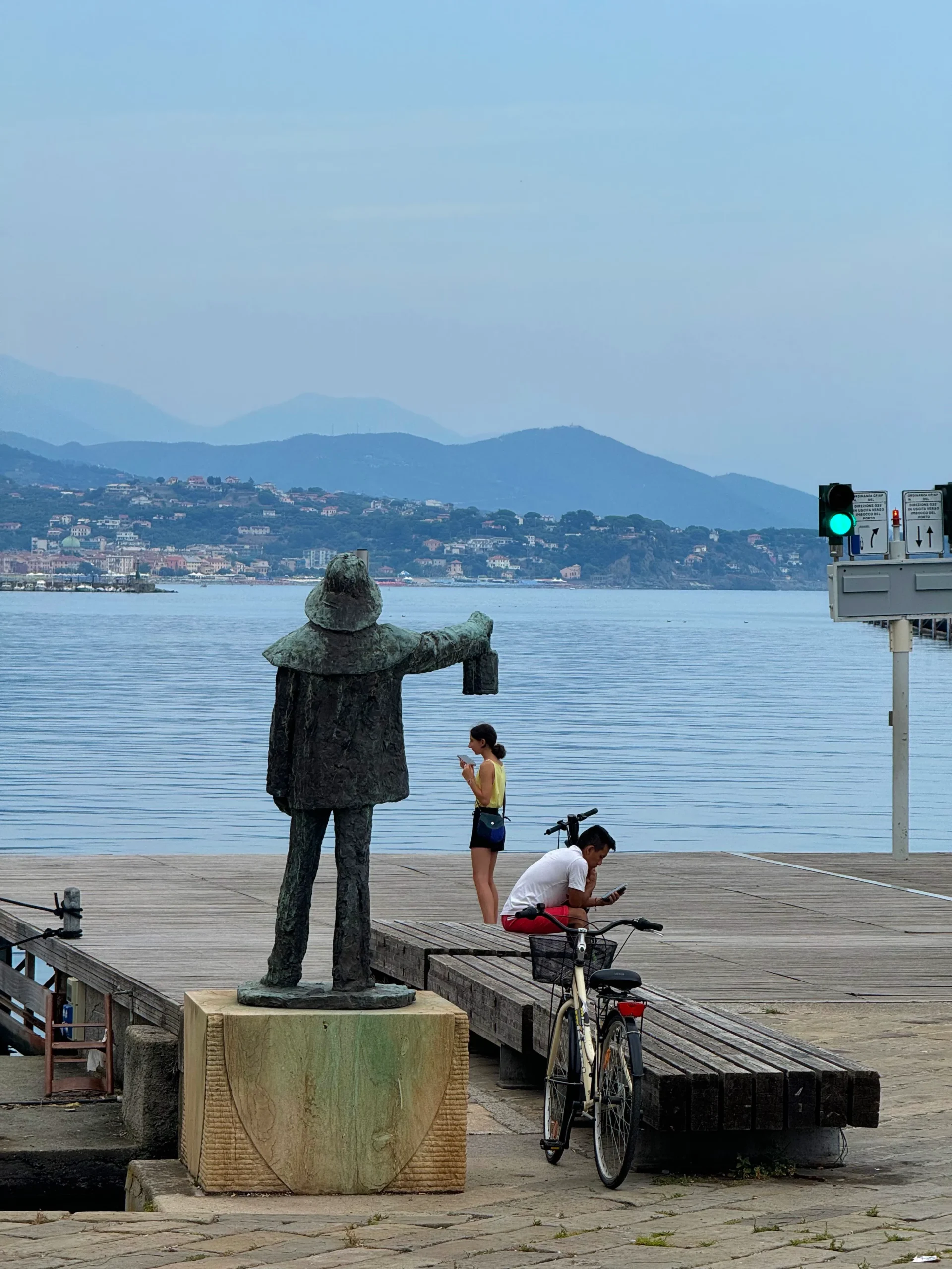 Погода відчувалася по-справжньому літньою, навіть без яскравого сонця. Час від часу легкі хмари пропливали небом, але вони не забирали тепла Лігурійського узбережжя. Повітря залишалося м’яким і солонуватим, огортаючи місто приємною спекою, яка не втомлювала, а заспокоювала. Це був саме той день, коли не хочеться нікуди поспішати, бо сама атмосфера тихо підказує сповільнитися й просто бути тут і зараз.