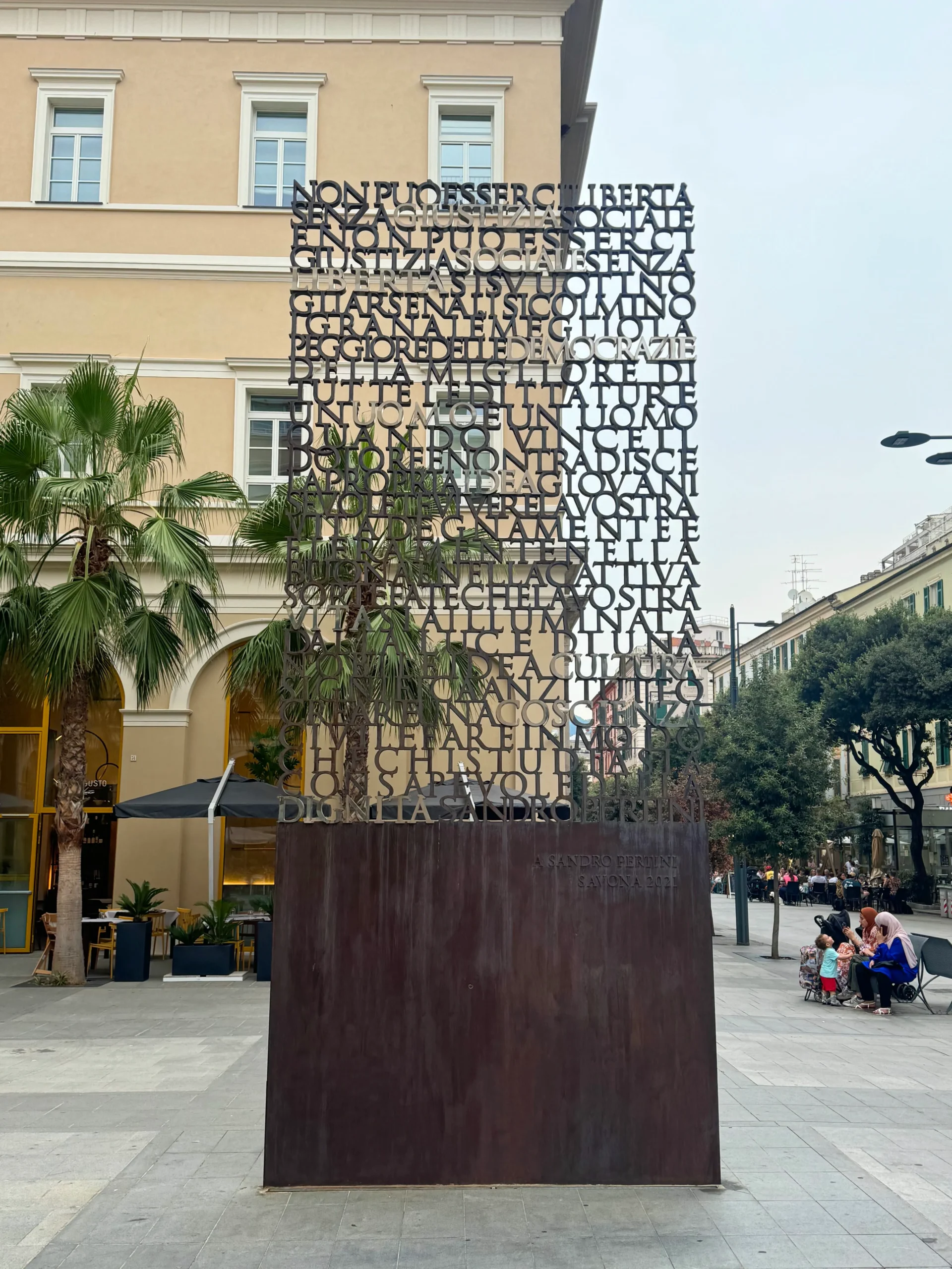 From the port, we slowly drifted into the city streets, letting curiosity guide our steps. Savona doesn’t shout for attention — it speaks quietly and confidently, through pastel façades, narrow streets, and unexpected glimpses of history. Behind simple corners, small squares opened up without warning, offering shade, fountains, and benches where time seemed to pause. These moments invited us to stop, sit, and observe the everyday life unfolding around us.