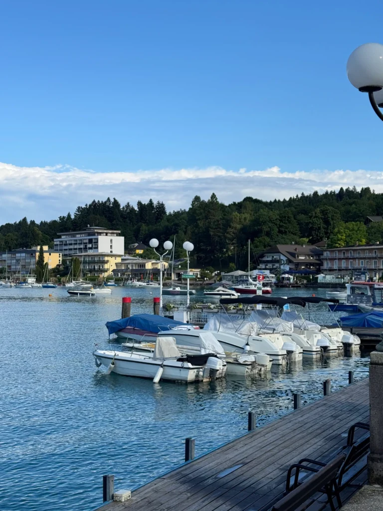 Auf dem Rückweg, als wir kleine Kärntner Dörfer durchquerten und der Regen in den Bergen einfach nicht nachliess, erreichten wir plötzlich einen Ort, der sich ganz anders anfühlte. Velden am Wörthersee empfing uns mit überraschend mildem und gemütlichem Wetter – eine kleine Pause zwischen den grauen Wolken ringsum.